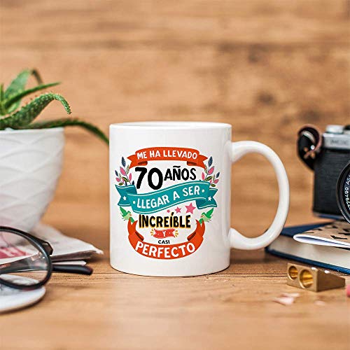 Conoce todo sobre «MUGFFINS Taza 70 Cumpleaños – «Me ha llevado 70 años llegar a ser increíble y casi perfecto – Regalos Desayuno Feliz Cumpleaños» y por qué es un regalo de cumpleaños tan popular, gracias a su completa ficha de producto con imágenes y detalles.